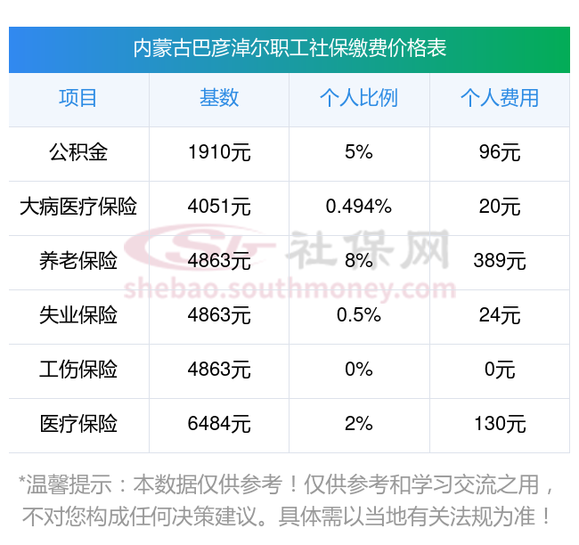 内蒙古巴彦淖尔缴费社保比例一览 社保公司和个人各交多少?下表是2024-2025年内蒙古巴彦淖尔社保费用明细参考,新社通app-社保缴费查询工具提供的最新数据如下: