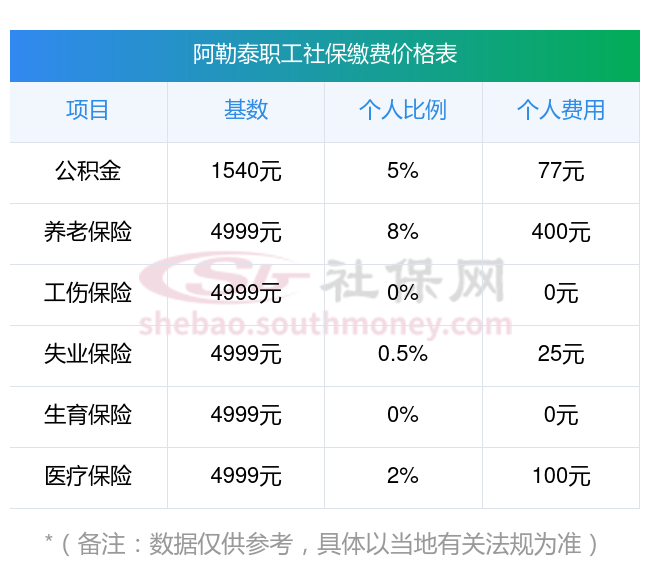 2025阿勒泰社保缴费标准一览表?新社通app-社保缴费查询工具提供的最新数据如下: