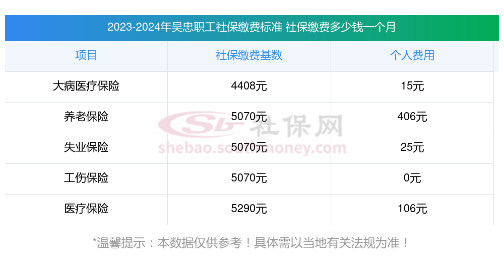 宁夏社保个人怎么交费?下表是2024-2025年吴忠社保费用明细参考,新社通app-社保缴费查询工具提供的最新数据如下: