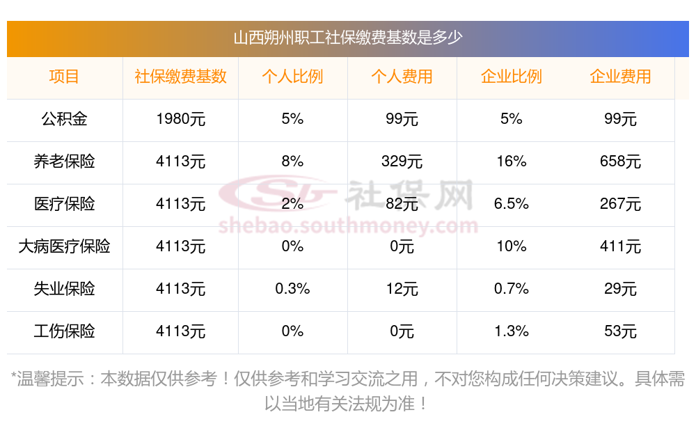 山西朔州社保一个月交多少钱,个人缴纳多少钱一个月?下面和社保网一起来看看山西朔州最低标准社保费用明细参考,新社通app-社保缴费查询工具提供的最新数据如下: