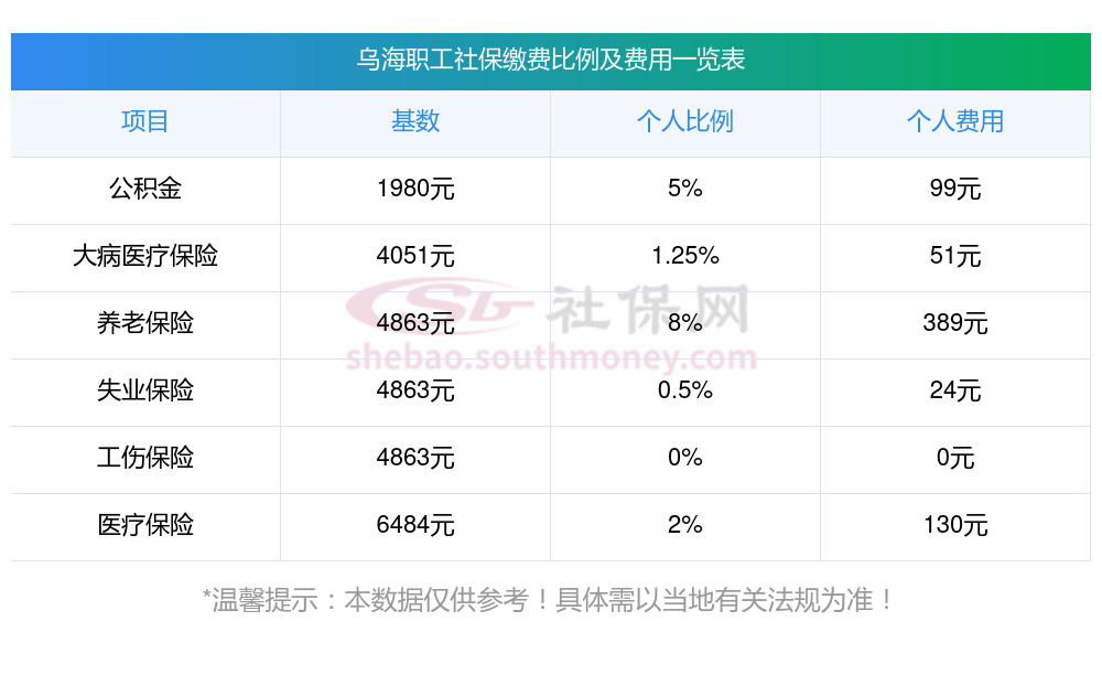 2025年乌海社保缴费最低基数及个人和单位具体是多少钱?下表是2025年乌海社保费用明细参考,新社通app-社保缴费查询工具提供的最新数据如下: