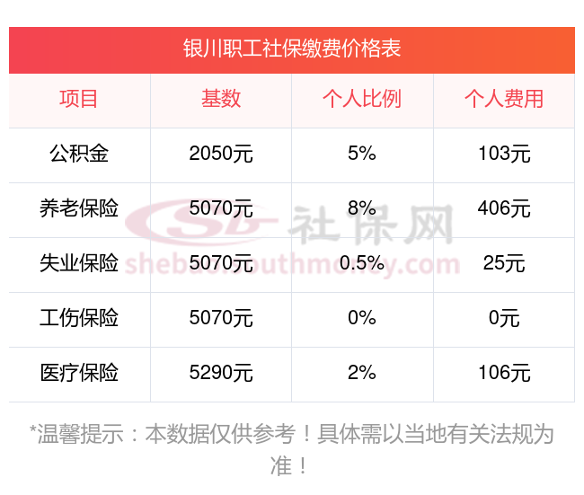 2025年银川社保缴费最低基数及个人和单位具体是多少钱?下表是2025年银川社保费用明细参考,新社通app-社保缴费查询工具提供的最新数据如下:
