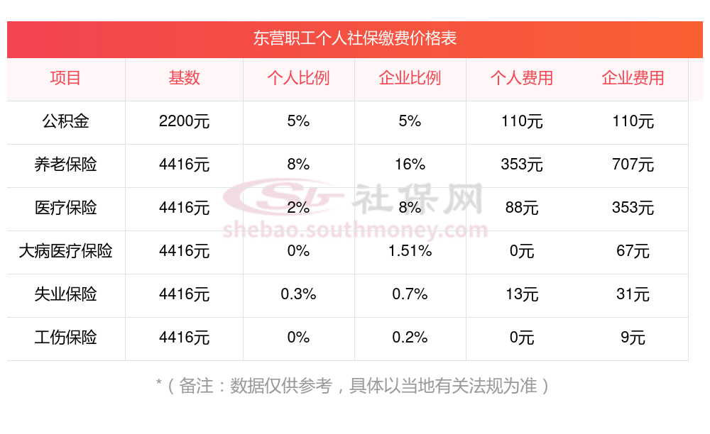 2025社保交多少钱?下表是2025年东营社保费用明细参考,新社通app-社保缴费查询工具提供的最新数据如下: