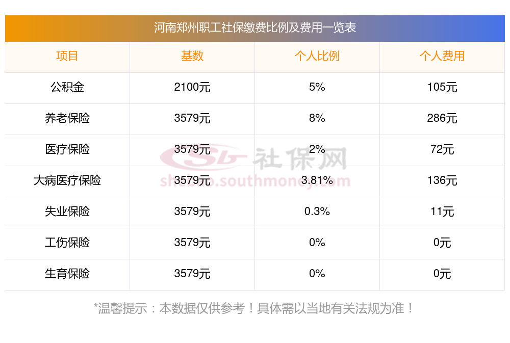 2025年河南郑州社保缴费最低基数及个人和单位具体是多少钱?下表是2025年河南郑州社保费用明细参考,新社通app-社保缴费查询工具提供的最新数据如下: