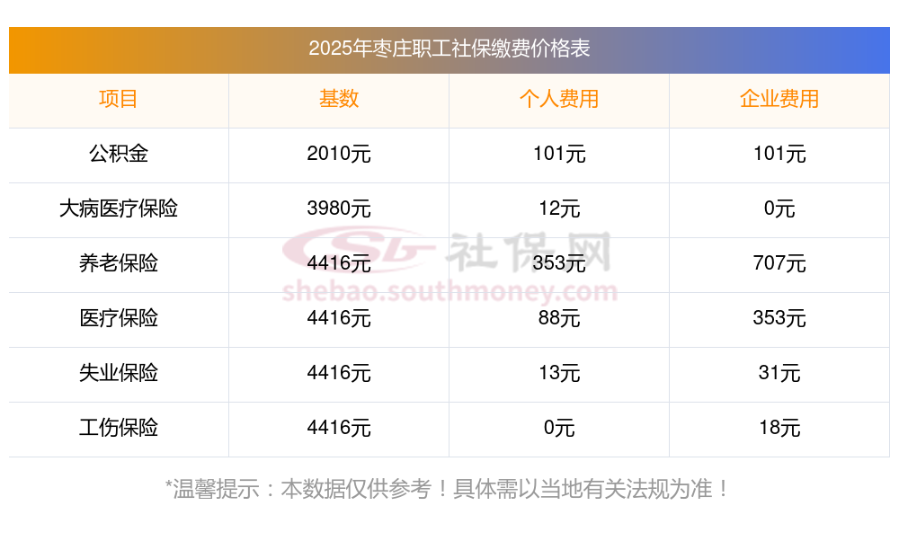 2025社保交多少钱?下表是2025年枣庄社保费用明细参考,新社通app-社保缴费查询工具提供的最新数据如下: