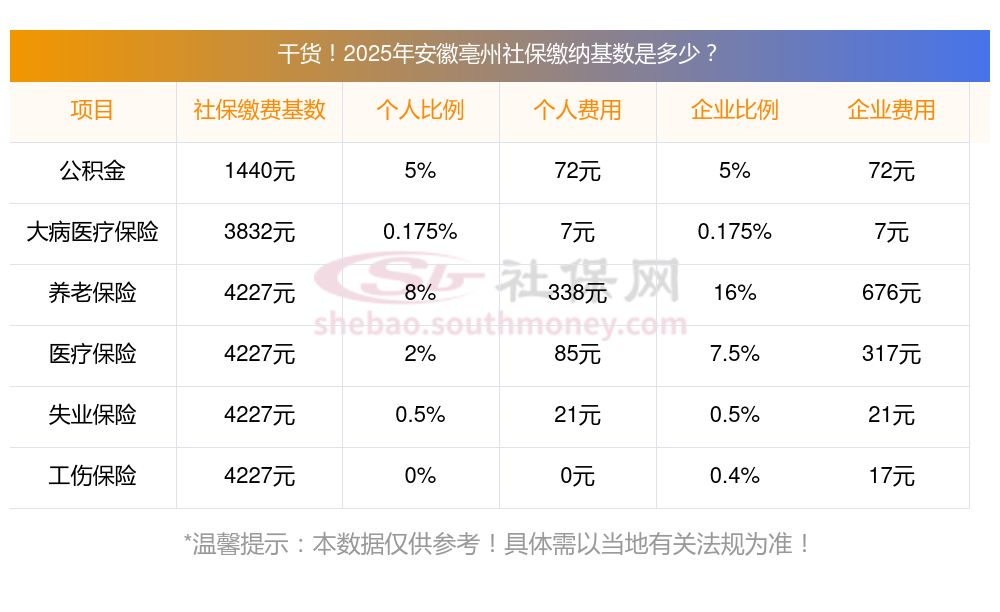 安徽亳州社保一个月交多少钱,个人缴纳多少钱一个月?下面和社保网小编一起来看看安徽亳州最低标准社保费用明细参考,新社通app-社保缴费查询工具提供的最新数据如下: