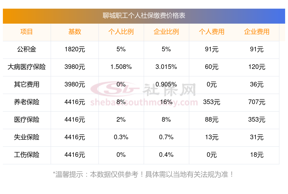 和新社丫丫一起来了解下:聊城社保缴费比例是多少?2024-2025年聊城社保费用明细参考,新社通app-社保缴费查询工具提供的最新数据如下: