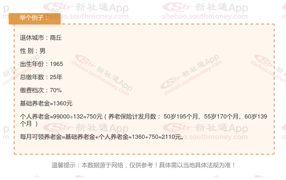 养老金总和:两者相加,每月养老金总额达到2110元。