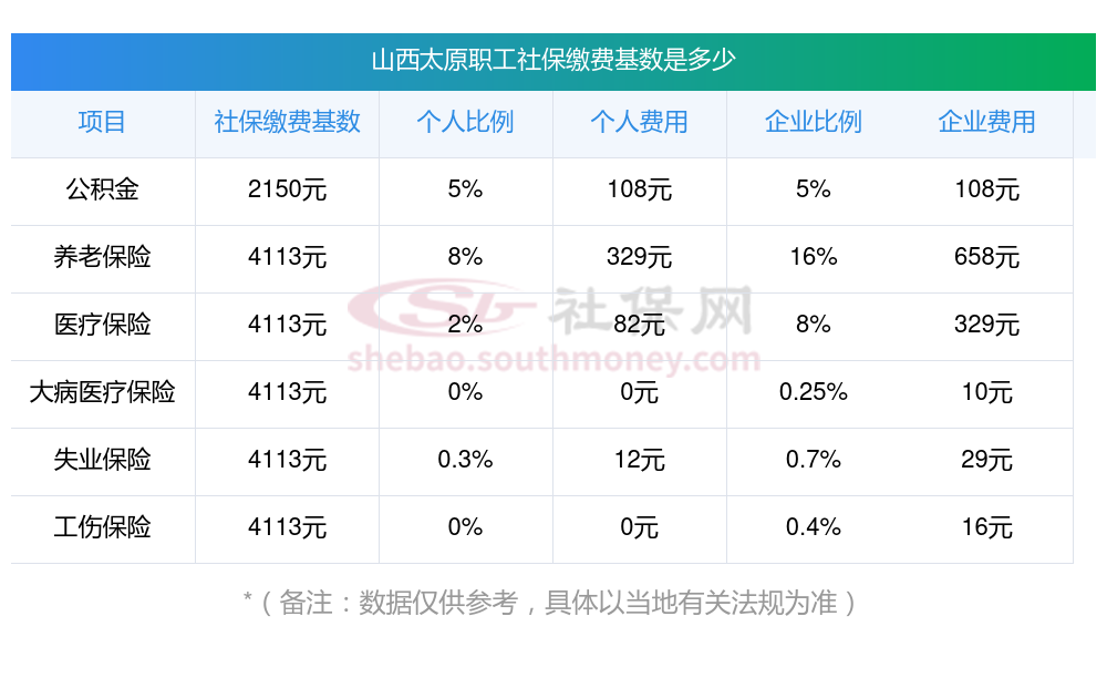 2025年山西太原社保缴费最低基数及个人和单位具体是多少钱?下表是2025年山西太原社保费用明细参考,新社通app-社保缴费查询工具提供的最新数据如下: