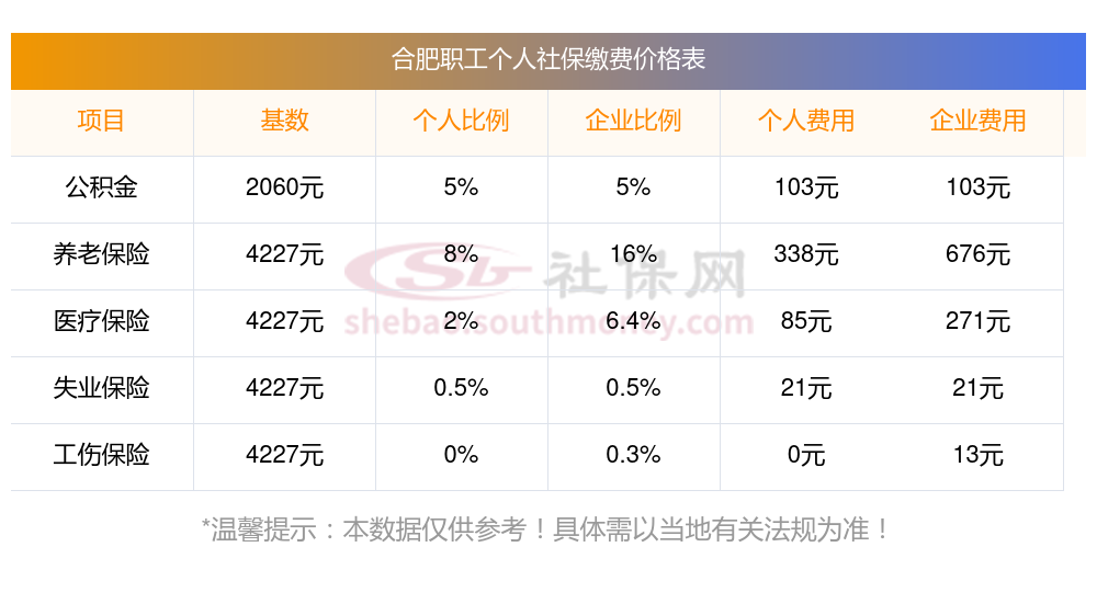 2025年合肥社保缴费多少钱?下表是2023-2024年合肥社保费用明细参考,新社通app-社保缴费查询工具提供的最新数据如下: