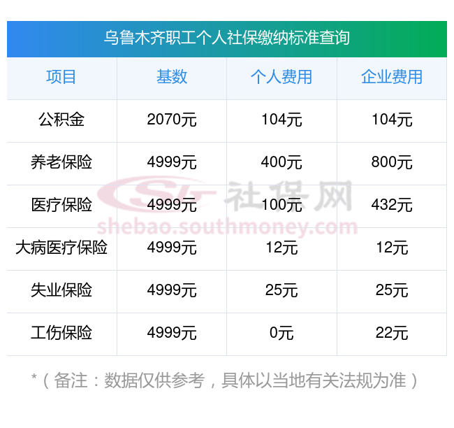 和社保丫丫一起来了解下:乌鲁木齐五险一金交多少钱一个月怎么算?2024-2025年乌鲁木齐社保费用明细参考,新社通app-社保缴费查询工具提供的最新数据如下: