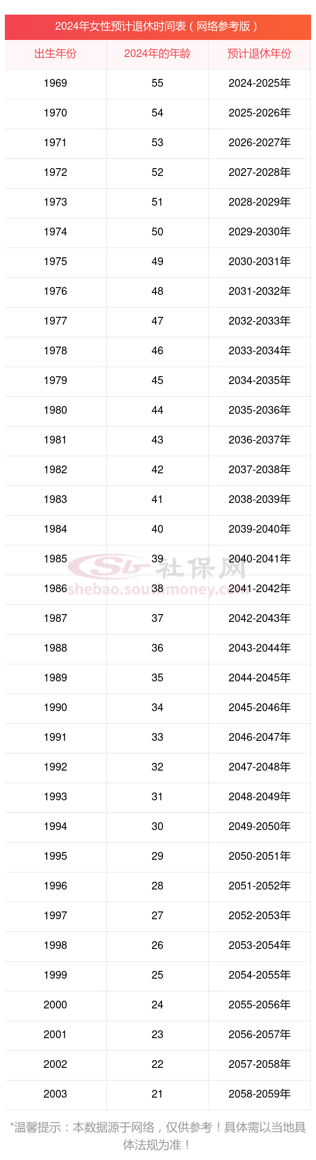 三、法定退休年龄是多少?男女退休年龄一览表(网络参考版)