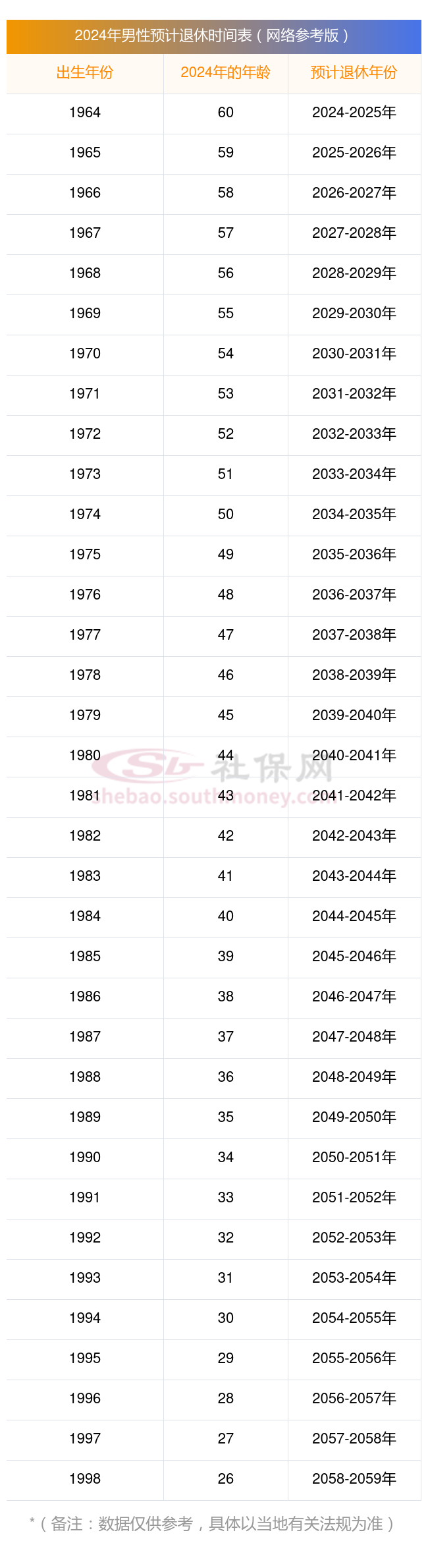 三、湖南郴州多少岁可以领取退休金?附70后退休年龄一览表(网络参考版)