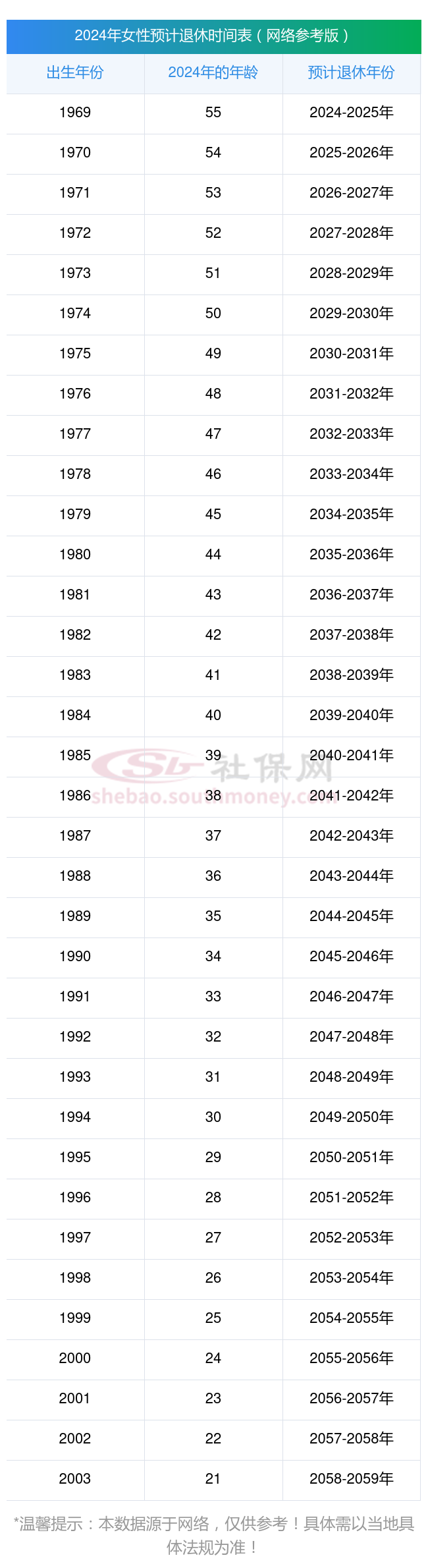 下面是网友整理的最新男性、女性退休年龄对照表,供您参考!