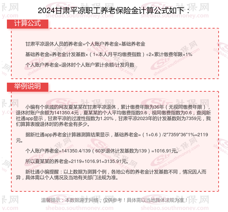甘肃平凉退休工资养老金计算方法及公式2024年最新(举例说明)