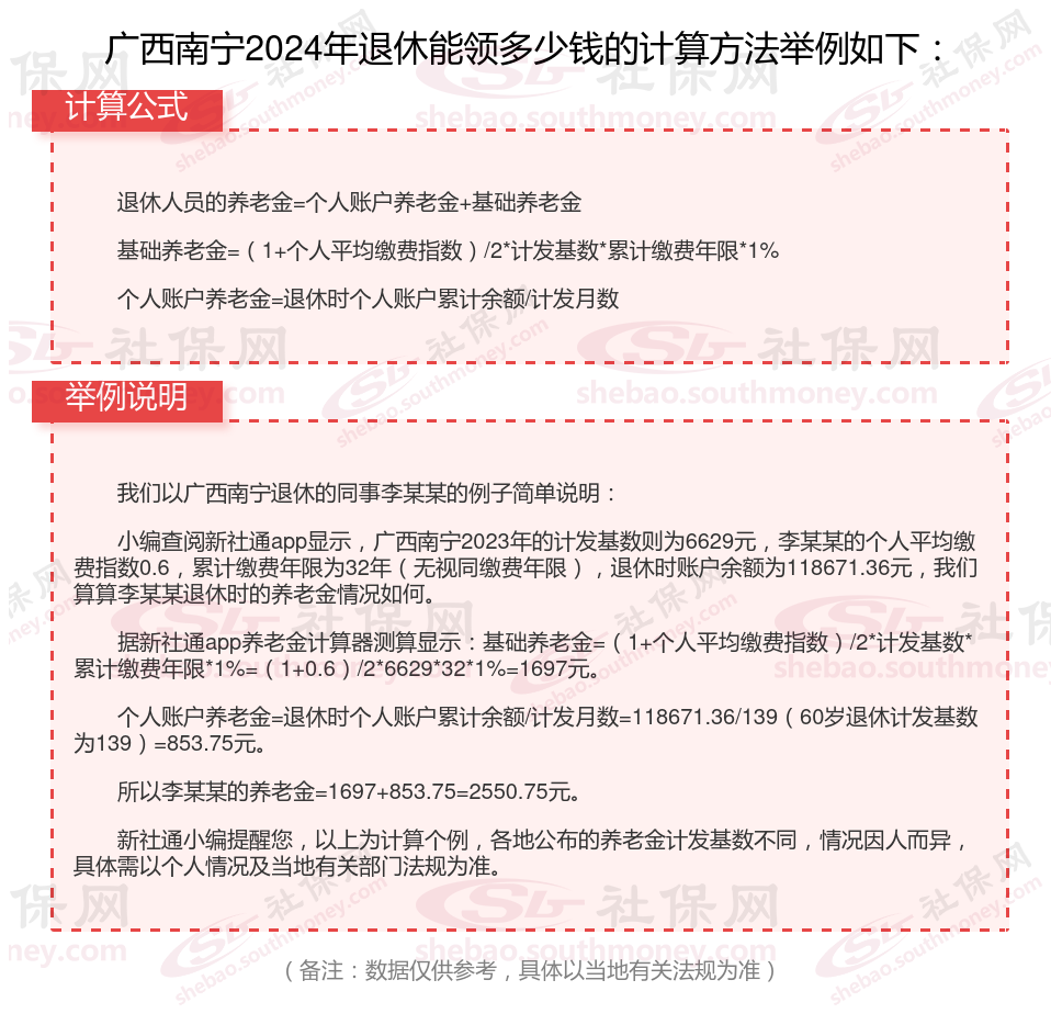 广西南宁退休工资养老金计算方法及公式2024年最新(举例说明)
