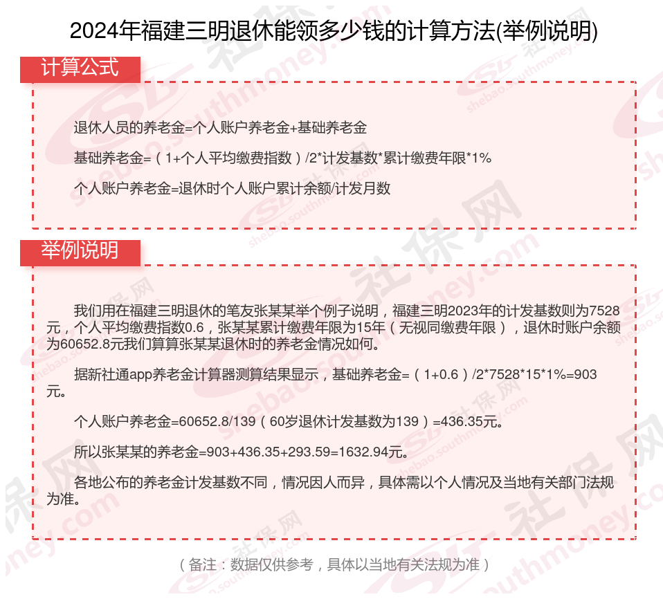 福建三明退休工资养老金计算方法及公式2024年最新(举例说明)