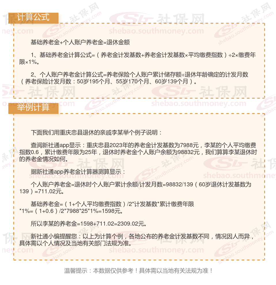 重庆忠县退休工资养老金计算方法及公式2024年最新(举例说明)