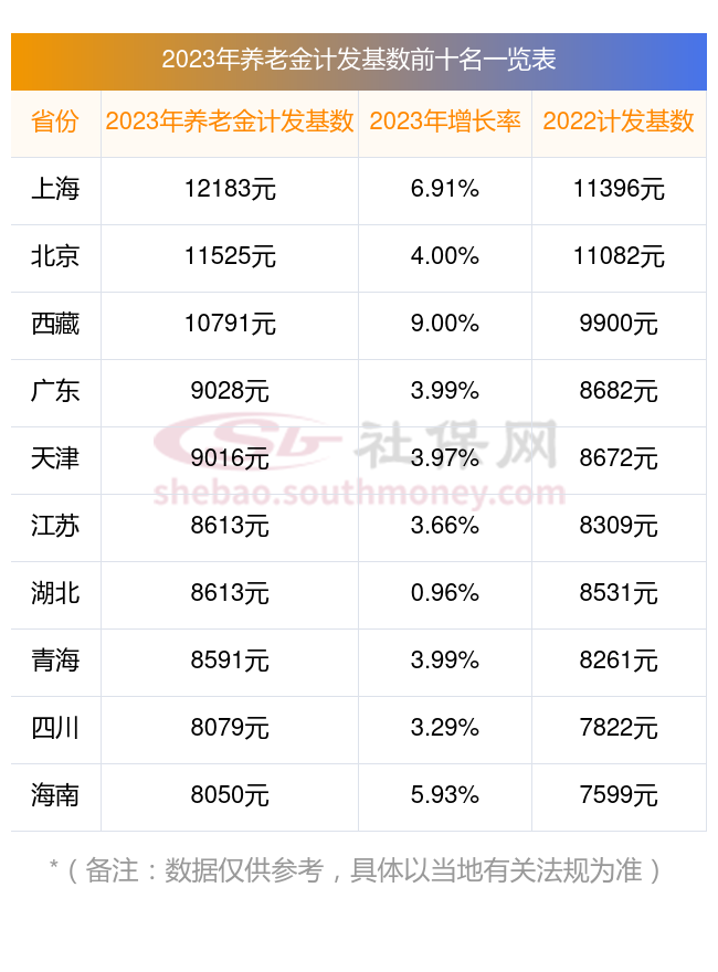 湖北潜江养老金计发基数是多少?附全国各地养老金计发基数排名前十,看看有哪些城市!