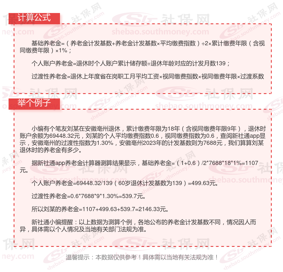 安徽亳州退休工资养老金计算方法及公式2024年最新(举例说明)