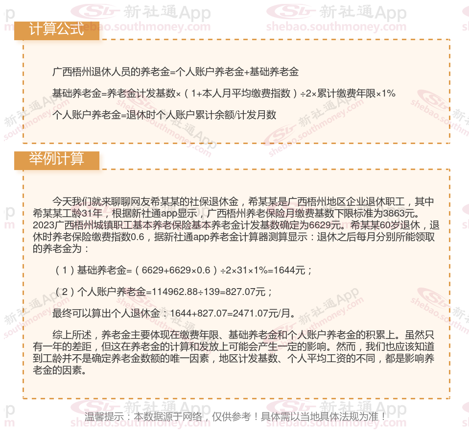 广西梧州退休工资养老金计算方法及公式2024年最新(举例说明)