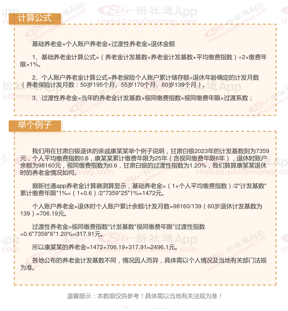 甘肃白银退休工资养老金计算方法及公式2024年最新(举例说明)