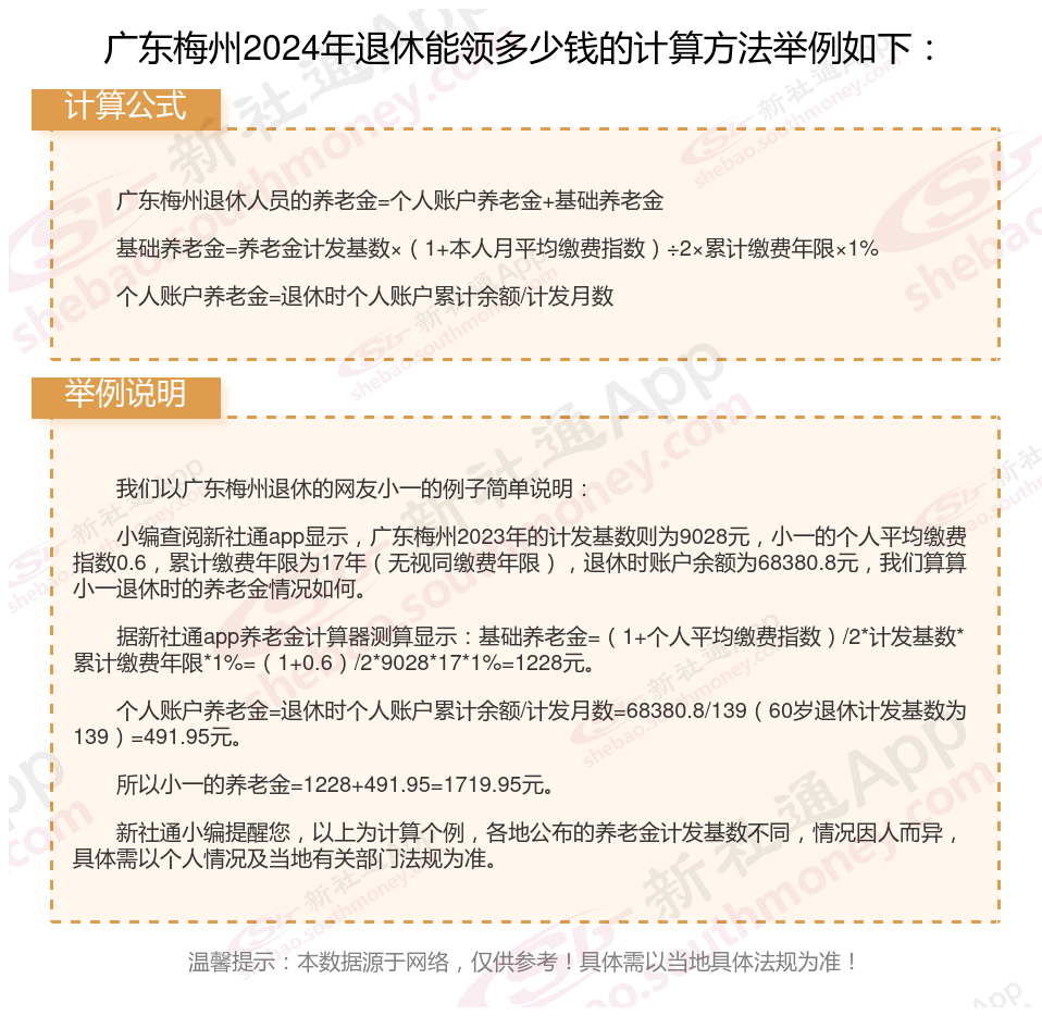 广东梅州退休工资养老金计算方法及公式2024年最新(举例说明)