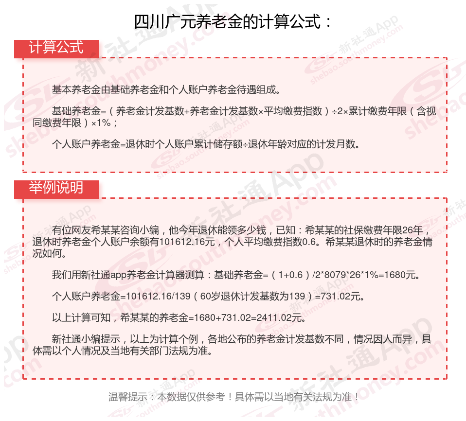 四川广元退休工资养老金计算方法及公式2024年最新(举例说明)