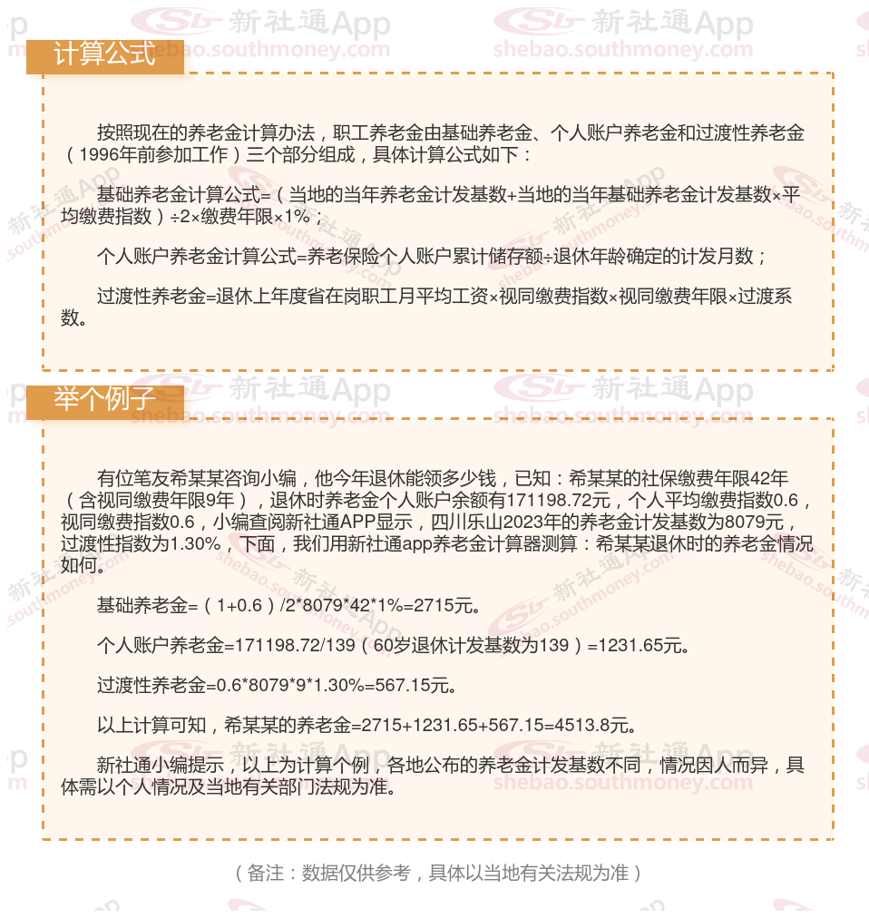 四川乐山退休工资养老金计算方法及公式2024年最新(举例说明)