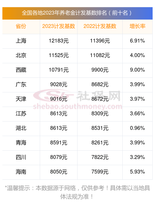 截至目前,2023年全国养老金计发基数排名前十名具体是多少呢?在这里简单分享一下: