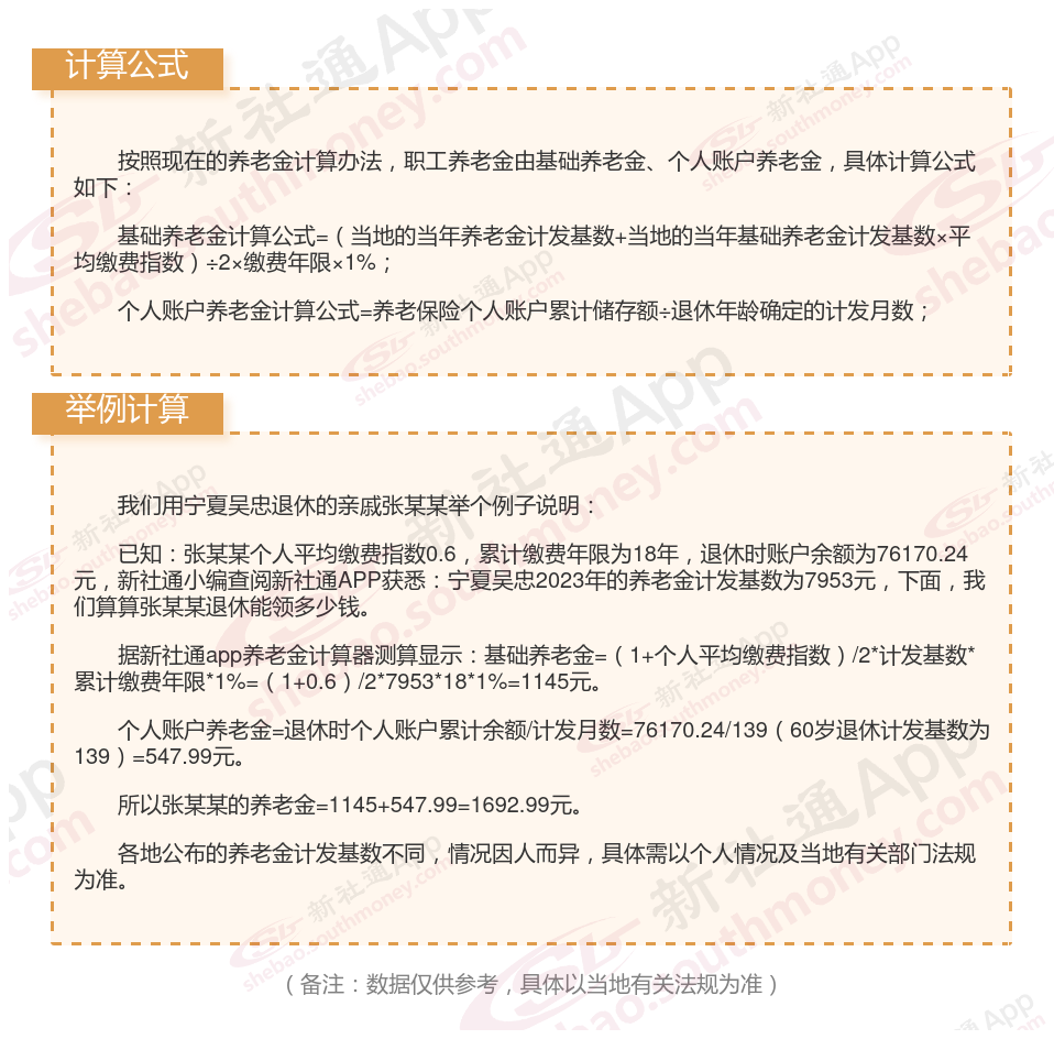 宁夏吴忠退休工资养老金计算方法及公式2024年最新(举例说明)