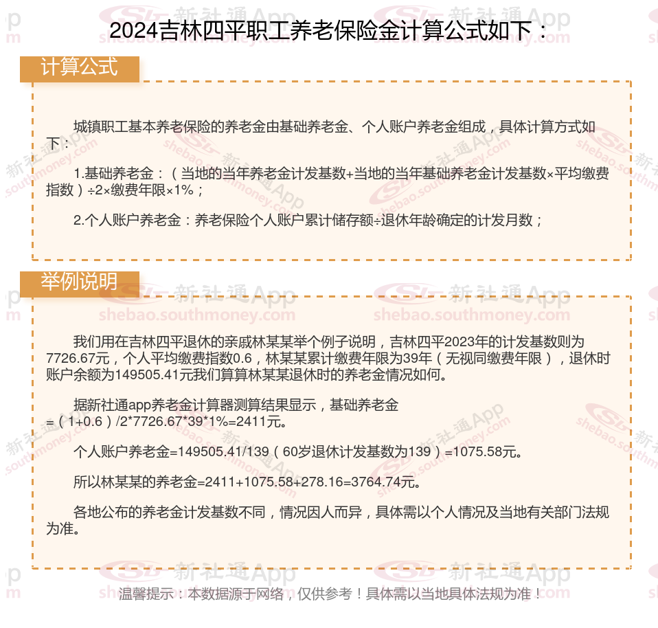 吉林四平退休工资养老金计算方法及公式2024年最新(举例说明)