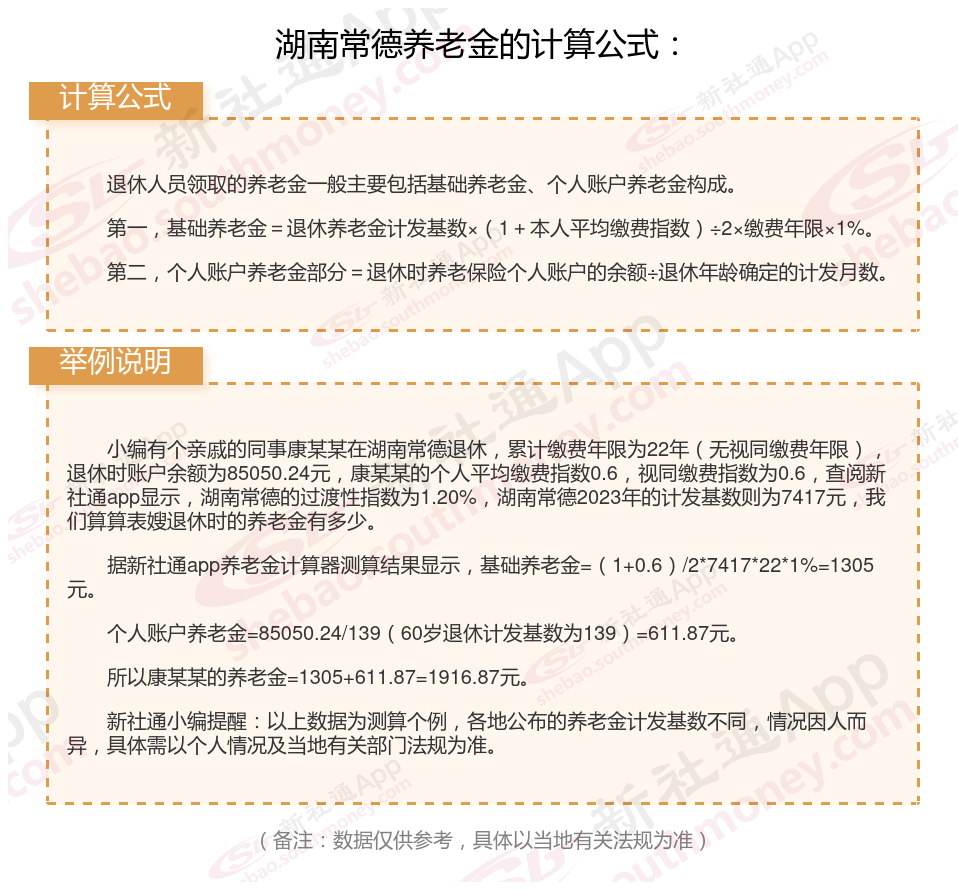 湖南常德退休工资养老金计算方法及公式2024年最新(举例说明)