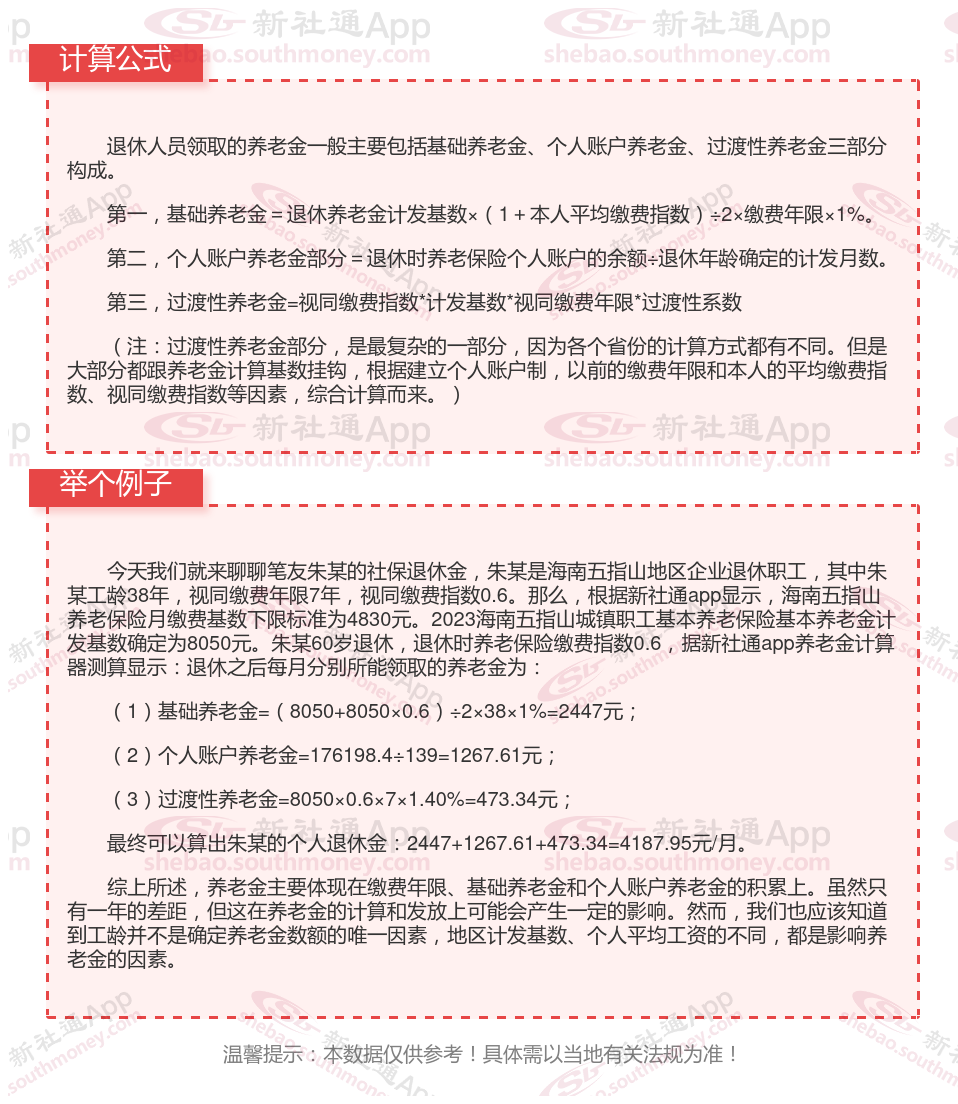 海南五指山退休工资养老金计算方法及公式2024年最新(举例说明)