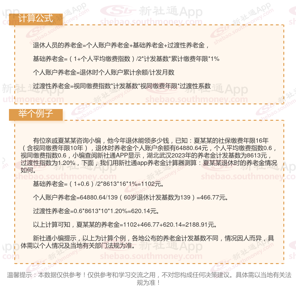 湖北武汉退休工资养老金计算方法及公式2024年最新(举例说明)
