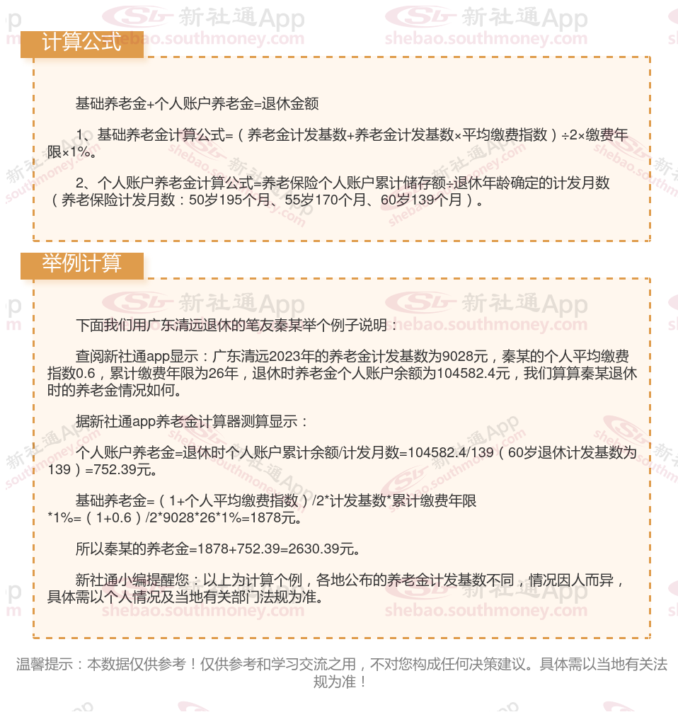 广东清远退休工资养老金计算方法及公式2024年最新(举例说明)