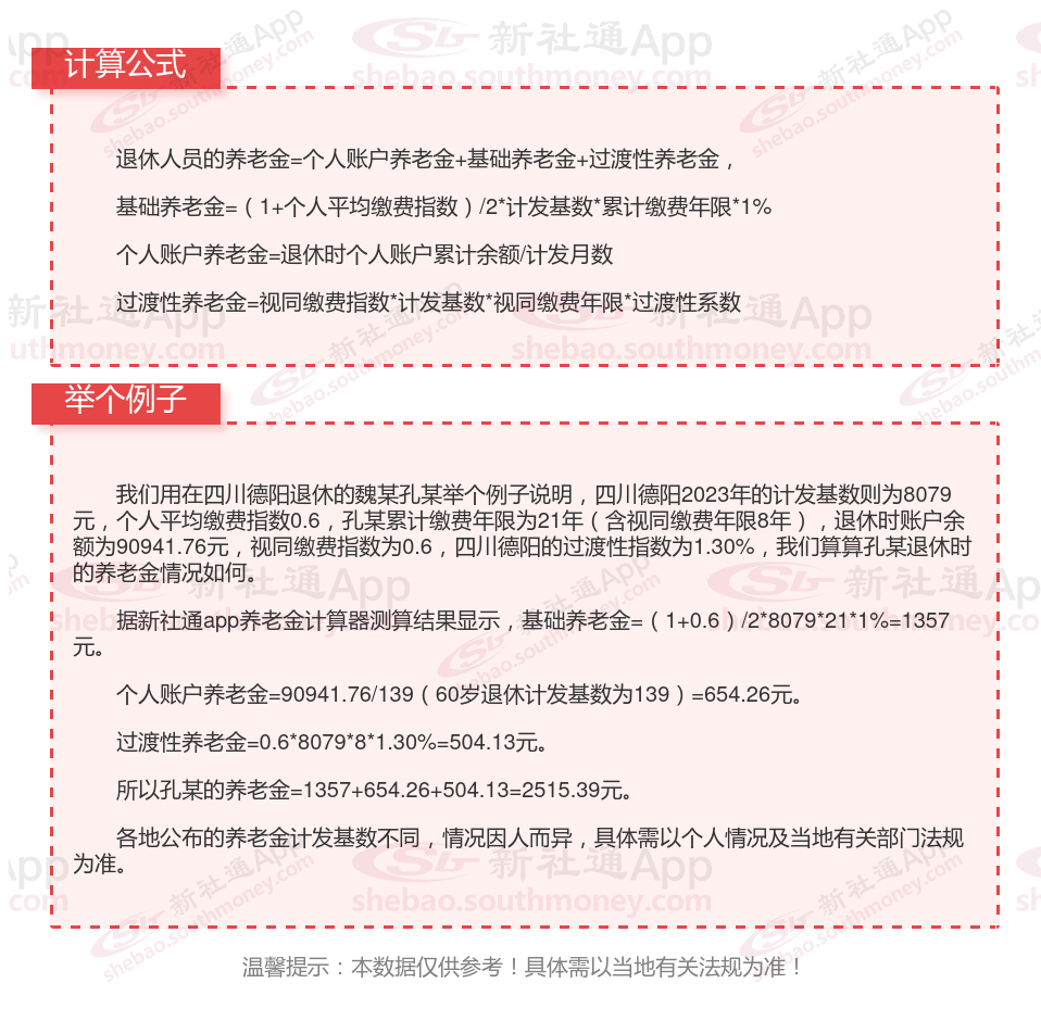四川德阳退休工资养老金计算方法及公式2024年最新(举例说明)