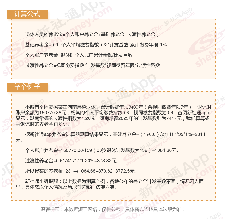 湖南常德退休工资养老金计算方法及公式2024年最新(举例说明)