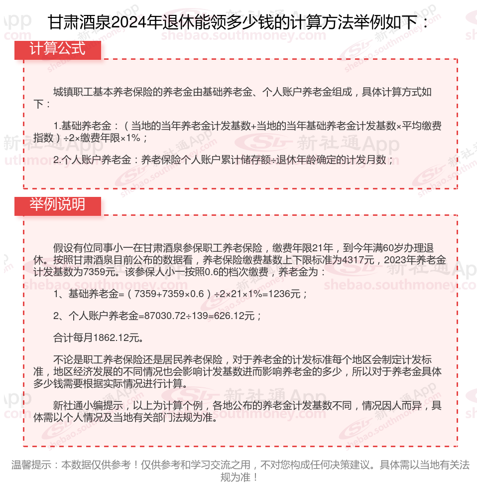甘肃酒泉退休工资养老金计算方法及公式2024年最新(举例说明)