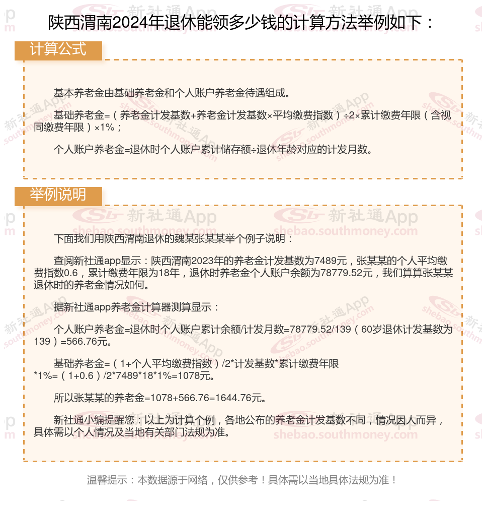 陕西渭南退休工资养老金计算方法及公式2024年最新(举例说明)