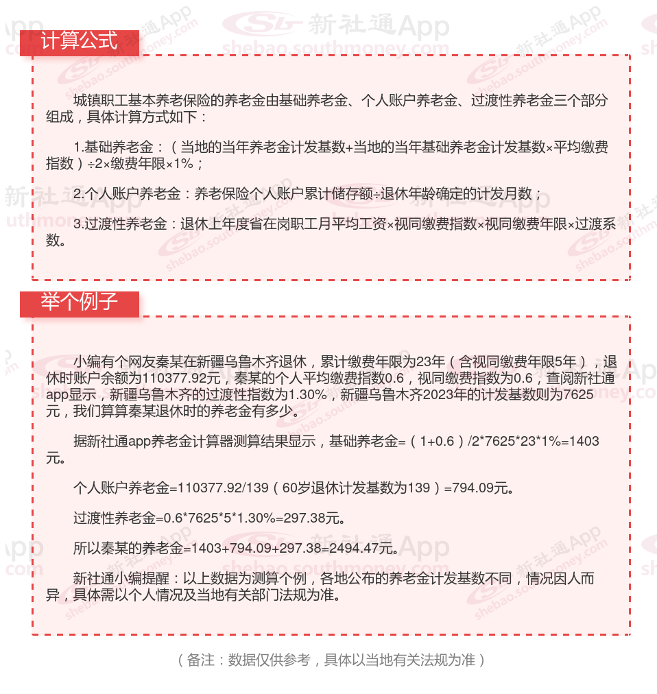 新疆乌鲁木齐退休工资养老金计算方法及公式2024年最新(举例说明)