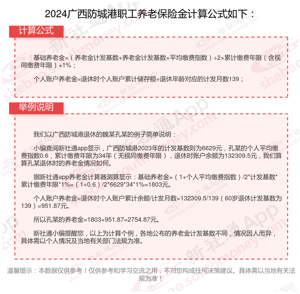 广西防城港退休工资养老金计算方法及公式2024年最新(举例说明)