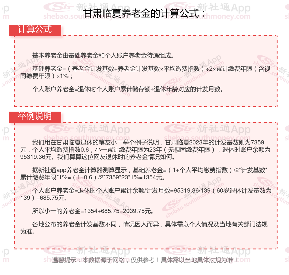 甘肃临夏退休工资养老金计算方法及公式2024年最新(举例说明)
