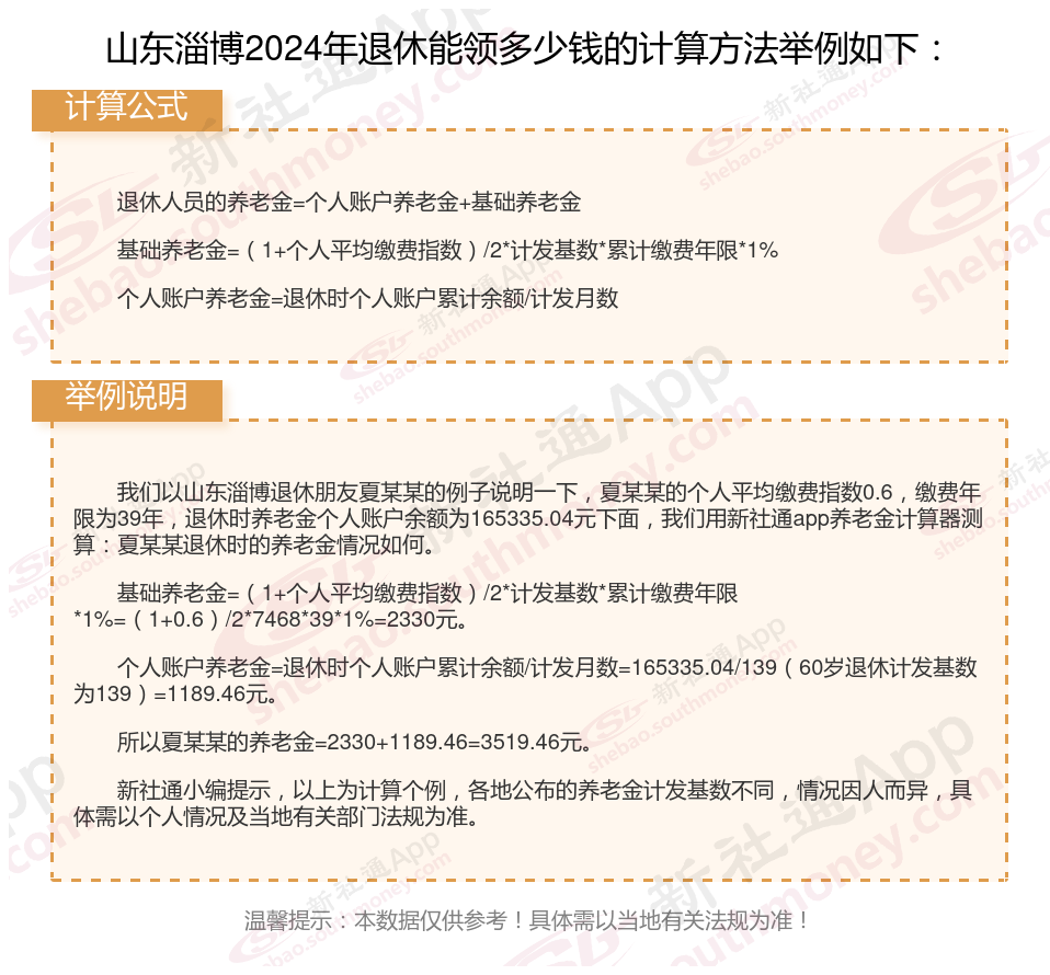 山东淄博退休工资养老金计算方法及公式2024年最新(举例说明)