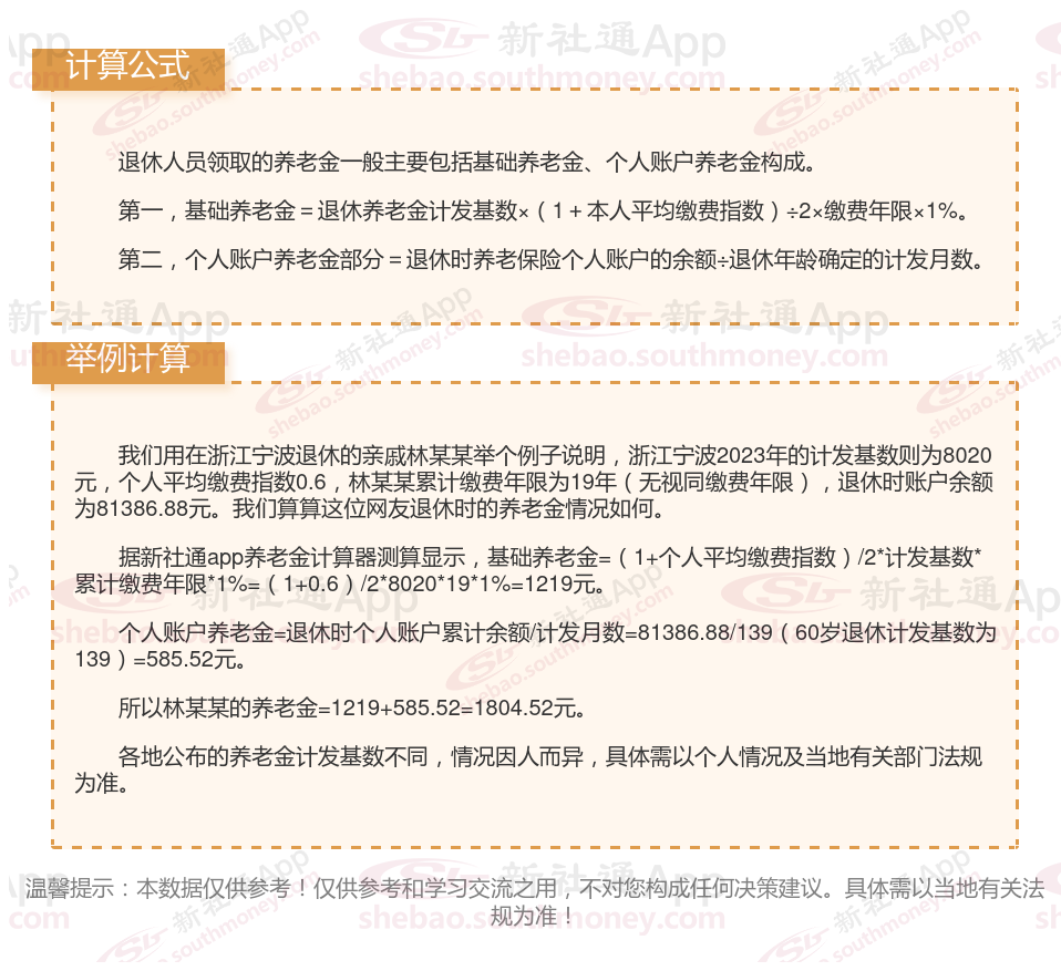 浙江宁波退休工资养老金计算方法及公式2024年最新(举例说明)
