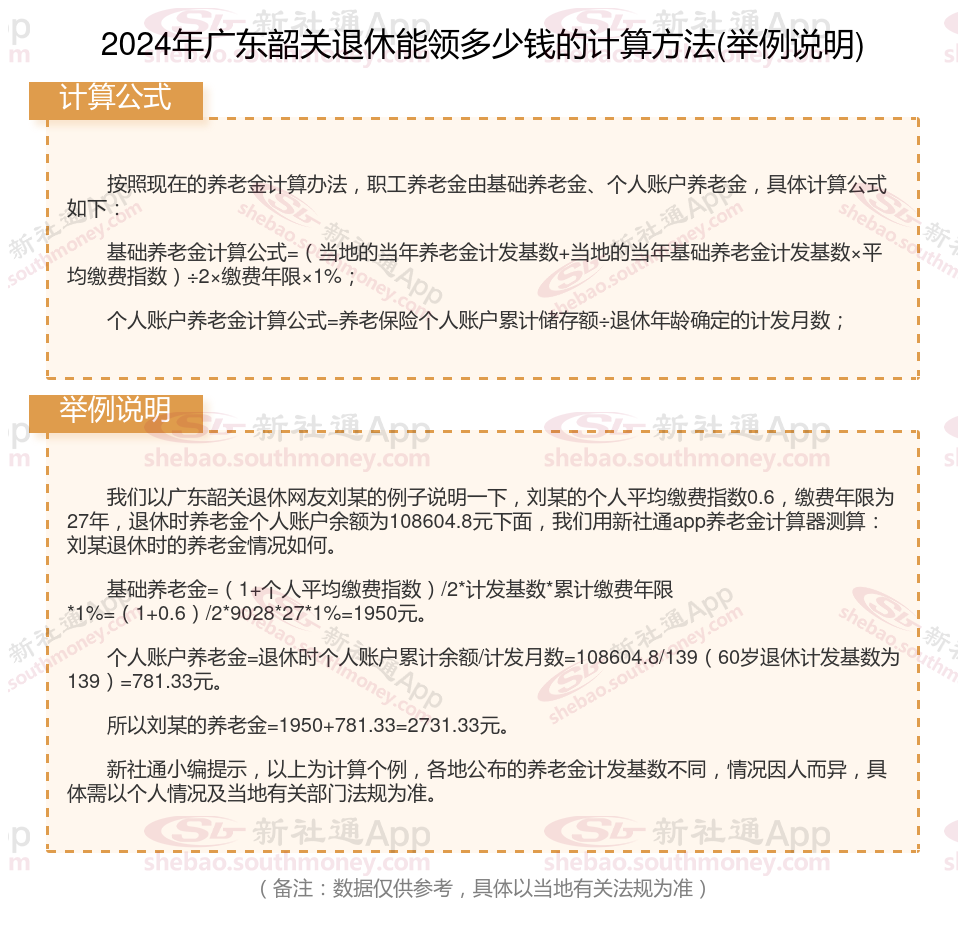 广东韶关退休工资养老金计算方法及公式2024年最新(举例说明)