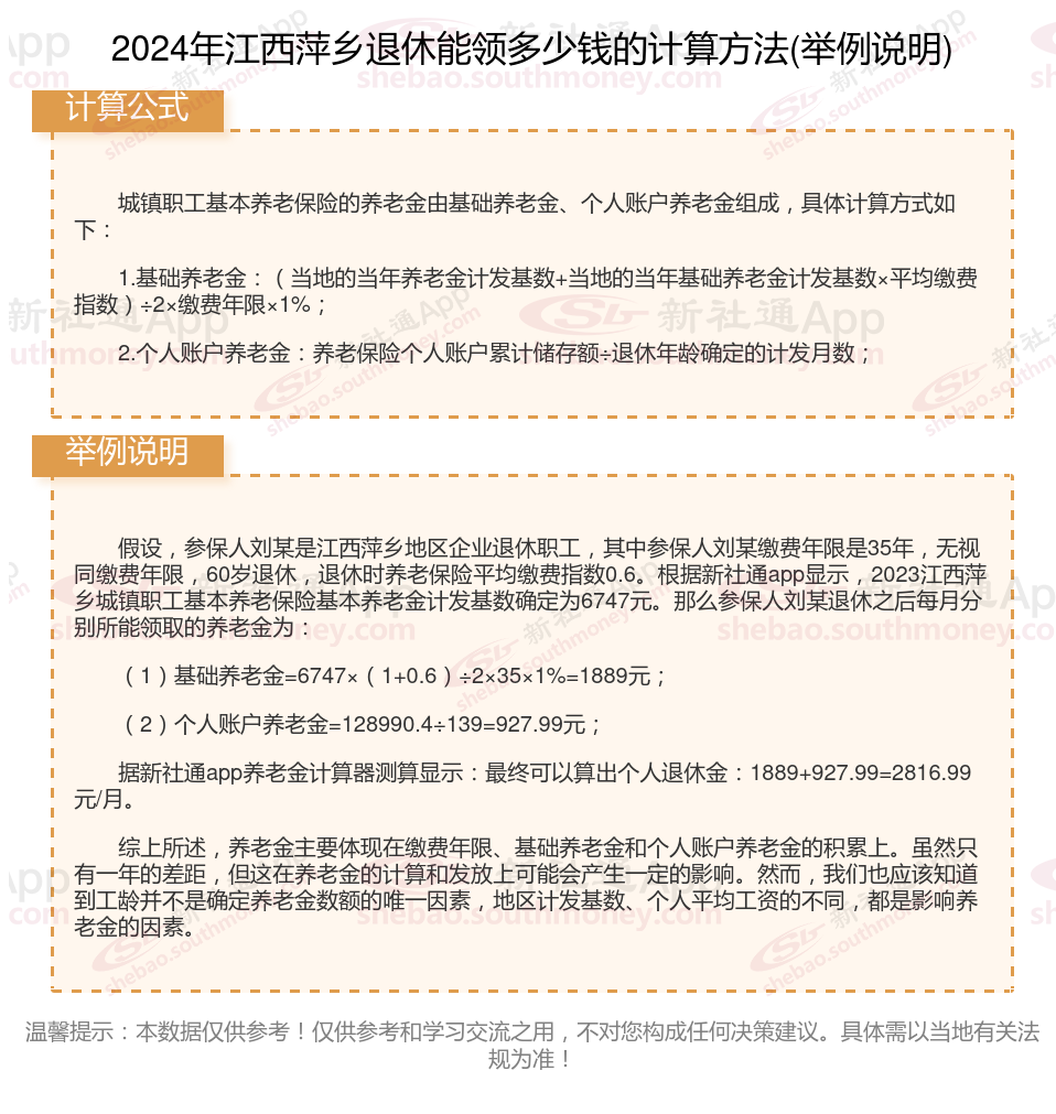 江西萍乡退休工资养老金计算方法及公式2024年最新(举例说明)