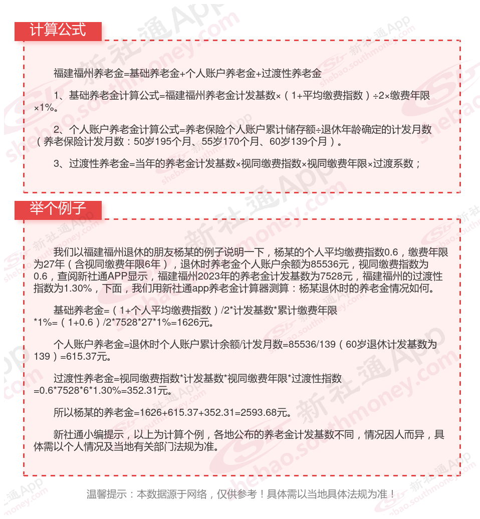 福建福州退休工资养老金计算方法及公式2024年最新(举例说明)