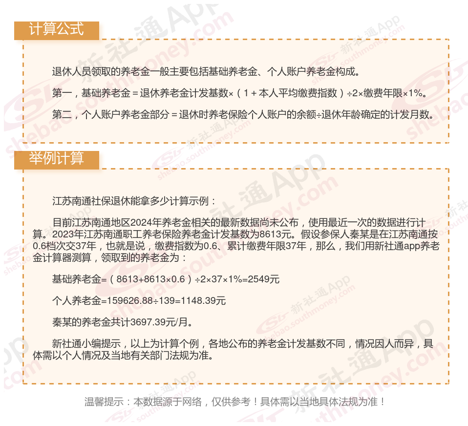 江苏南通退休工资养老金计算方法及公式2024年最新(举例说明)