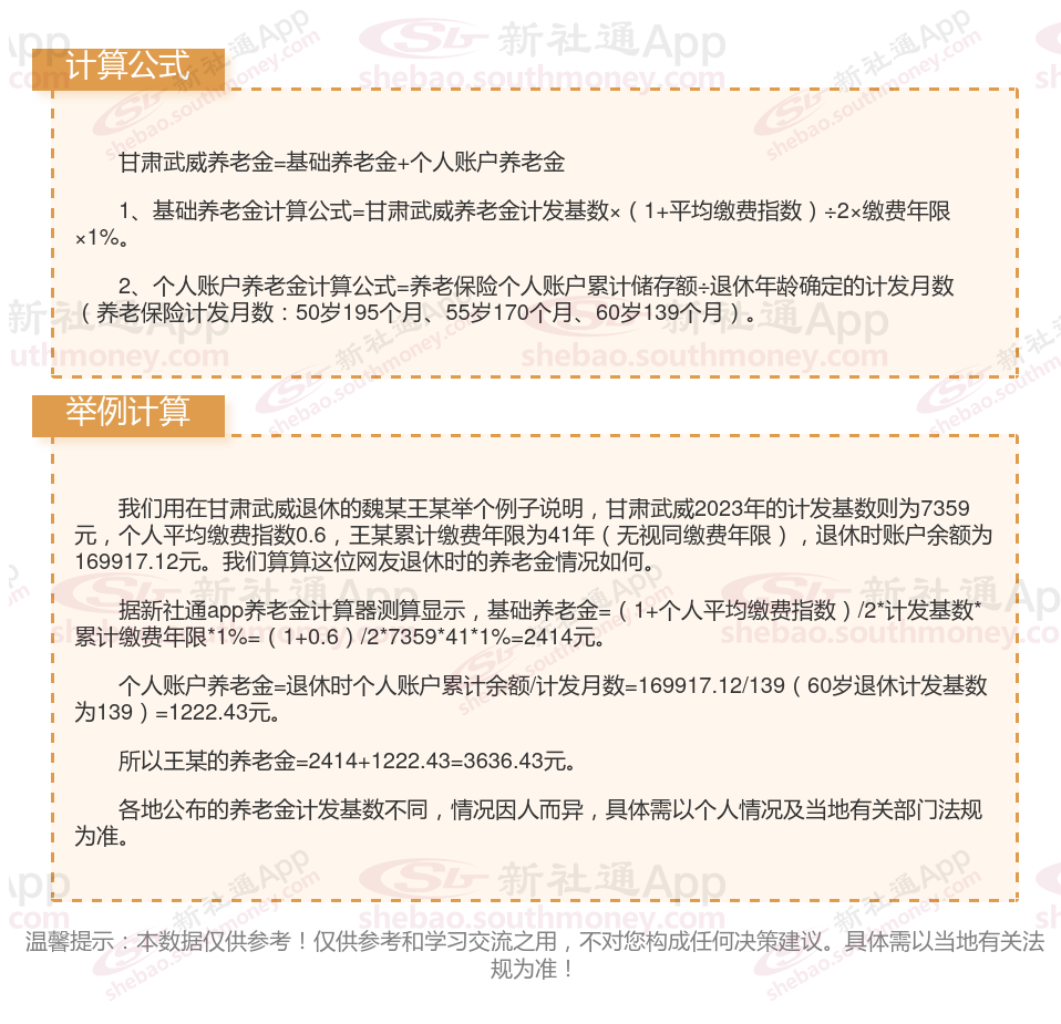 甘肃武威退休工资养老金计算方法及公式2024年最新(举例说明)